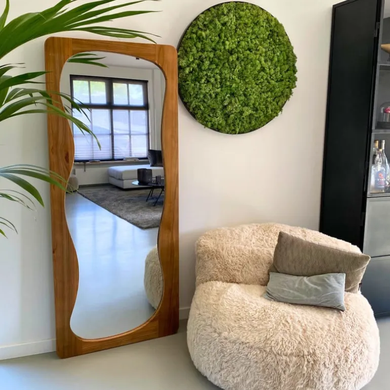 Zie jezelf van top tot teen – in stijl! Deze passpiegel met speelse wave-rand is een echte blikvanger in je interieur. Gemaakt van massief acaciahout met een warme, natuurlijke finish, brengt hij karakter én elegantie in elke ruimte. Of je ’m nou in de hal, slaapkamer of kleedkamer zet: hij geeft elke ruimte meteen een boost.