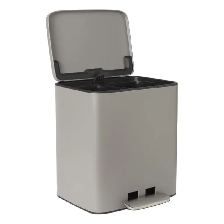 Deze pedaalemmer heeft twee vakken van 11.5 liter en maakt het gemakkelijk om afval te sorteren zonder gedoe. Door de twee aparte binnenemmers van elk 11.5 liter is het mogelijk om verschillende soorten afval in één pedaalemmer te scheiden. De binnenemmer is gemaakt van kunststof en het legen van de binnenemmer gaat gemakkelijk. Met het pedaal kan je de pedaalemmer handsfree openen, wat zorgt voor gemak en hygiëne.