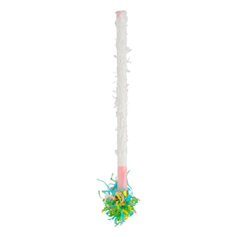 Sla de piñata kapot met deze witte stick met gekleurde sliertjes aan de onderkant. Deze vrolijk gekleurde stok is gemaakt van kunststof en papier. De stick is speciaal voor het openslaan van een piñata. De piñata stick is 50 centimeter lang en 2 cm dik. Party on!
