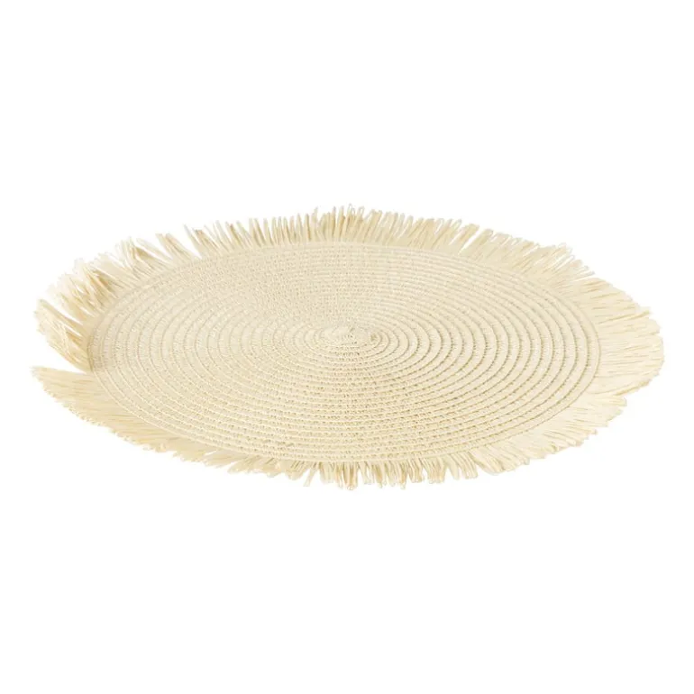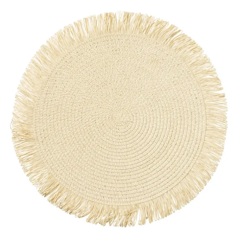 Een natuurlijke touch aan jouw lunch of diner? Met dit mooie placemat met franjes zal jouw tafel mooie rustige sferen hebben. De kleur is zand. Het placemat gemaakt van papier en heeft een diameter van 38 cm.