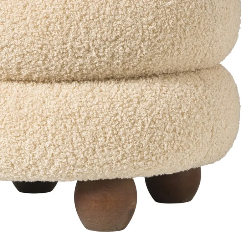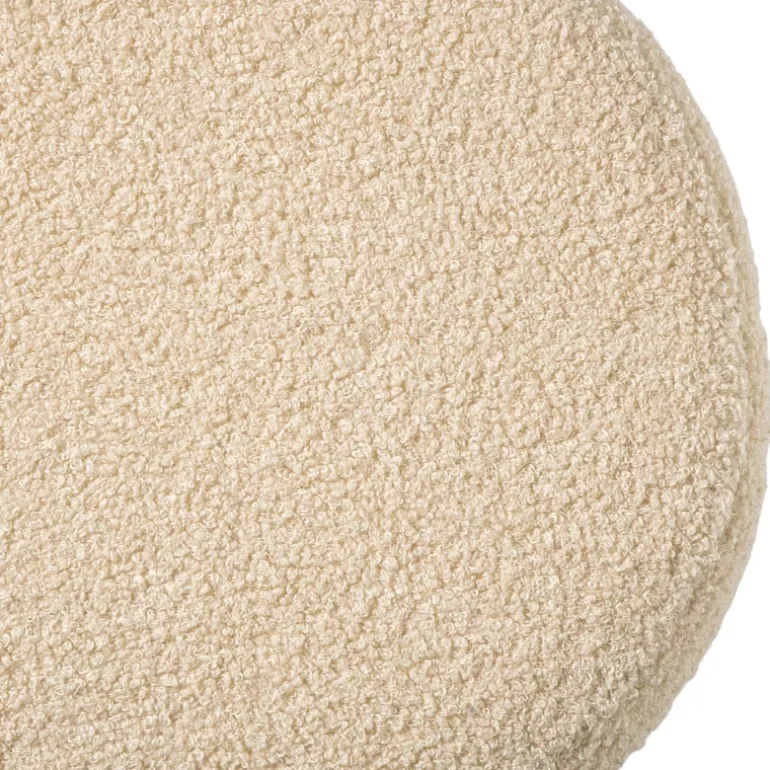 De poef heeft een frame gemaakt van MDF en is bekleed met bouclé stof (polyester).