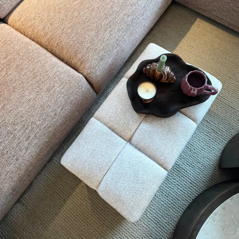 Deze poef is gemaakt van chenille (polyester). Chenille is een superzachte en warme stof die je vaak tegenkomt in interieurtextiel zoals gordijnen, plaids en kussens. De naam komt van het Franse woord voor rups, en dat is niet voor niks: de stof voelt fluweelachtig aan en heeft een licht glanzende, pluizige structuur.