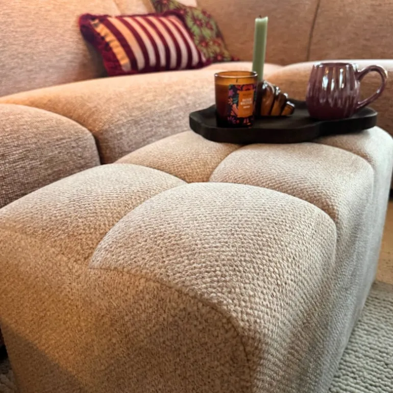 Zacht, stijlvol én functioneel: deze beige chenille poef is een echte aanwinst voor je interieur. Het compacte formaat biedt comfort én flexibiliteit: gebruik ’m als voetensteun, extra zitplek of zelfs als bijzettafeltje met een dienblad erop. Ideaal voor knusse hoekjes, gezellige zithoeken of als decoratief accent.