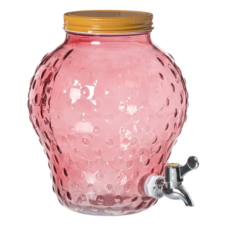 Gemaakt van stevig glas, is de sapkan ideaal voor dagelijks gebruik en brengt het meteen een zomerse sfeer naar je tafel, of je nu binnen of buiten zit. De handige schenktuit zorgt ervoor dat je je dranken makkelijk kunt serveren, terwijl de schattige aardbei-look een glimlach op je gezicht tovert. Perfect voor feestjes, picknicks of gewoon om je dranken op een leuke manier te presenteren!