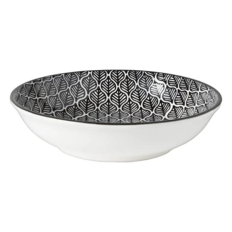 Ben je op zoek naar een leuke schaal voor hapjes of tapas? Dan is dit schaaltje precies wat je zoekt. Het schaaltje is gemaakt van porselein, heeft een zwarte kleur en leuk printje met bladeren. Het schaaltje heeft een diameter van 14 cm en is 2.5 cm hoog. Het schaaltje is ook verkrijgbaar in andere varianten. Het schaaltje is vaatwasmachine- en magnetronbestendig.