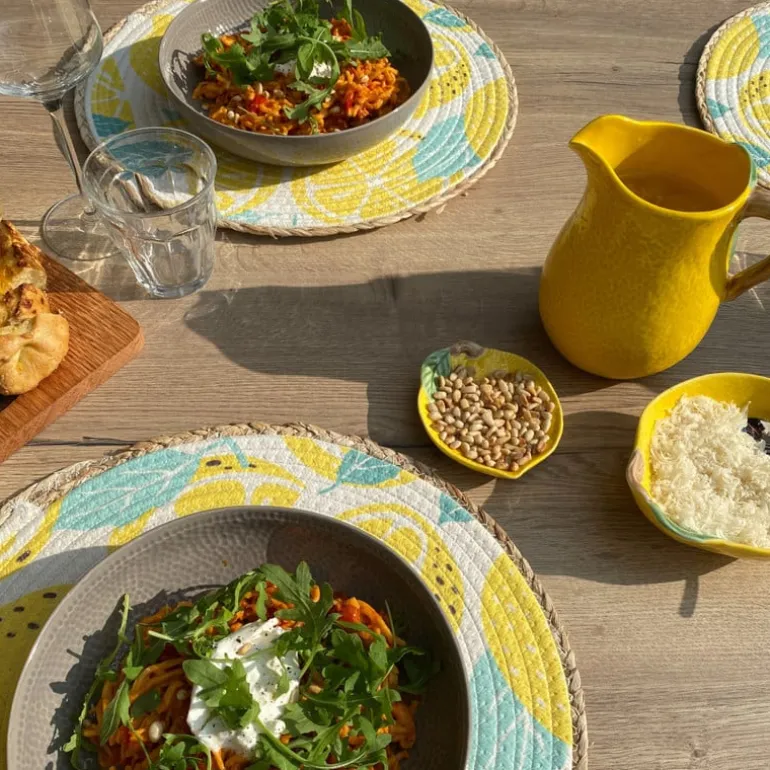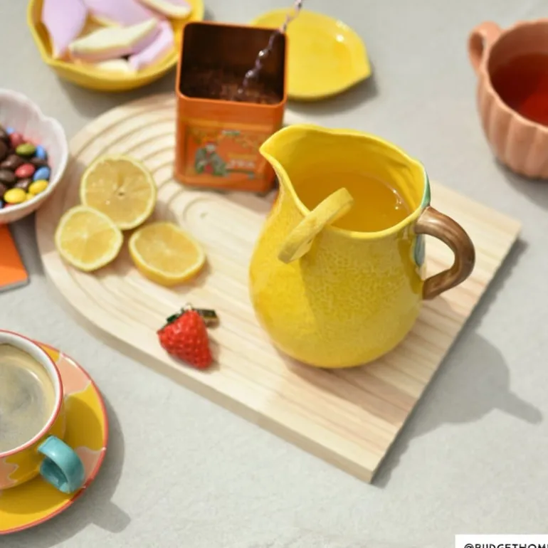 Een schenkkan is een must voor iedere etentje. Of je ‘m nu gebruikt voor het serveren van vers geperste sinaasappelsap tijdens het ontbijt of verfrissend water bij het diner: een schenkkan komt altijd van pas. De schenkkan heeft een gele kleur en is gemaakt van stoneware. De kan heeft een hoogte van 15.4 cm, een breedte van 15 cm en een diepte van 12 cm. De schenkkan heeft een inhoud van 800 ml.