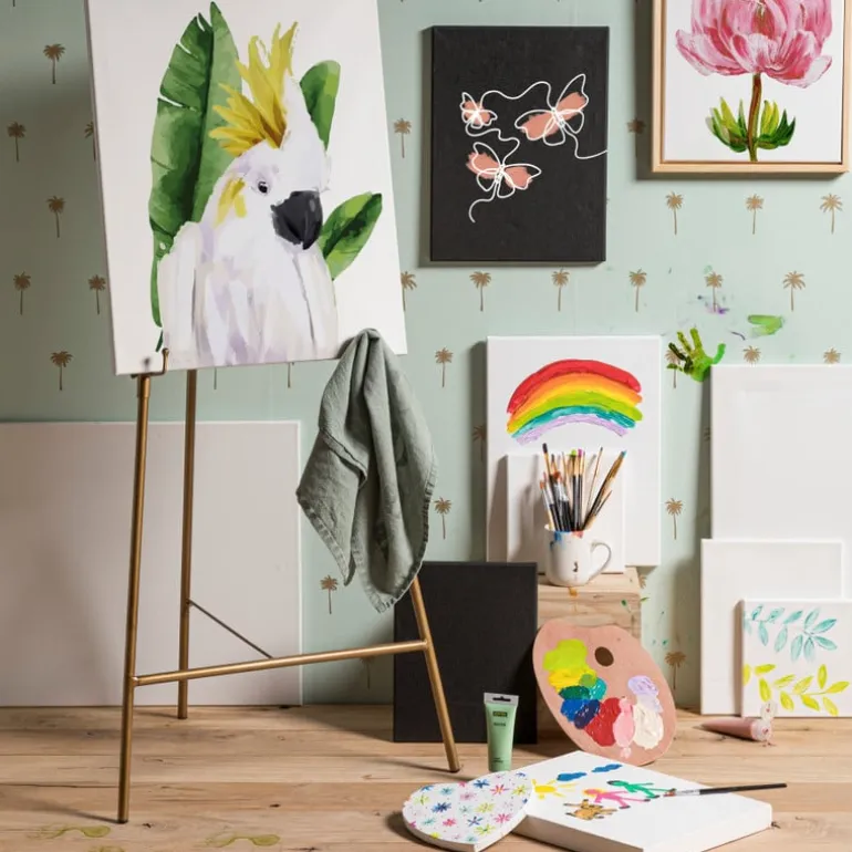 Met deze grote schildersezel wordt schilderen eenvoudiger dan ooit! De ezel is gemaakt van metaal en de gouden afwerking geeft de schildersezel een luxe uitstraling. De metalen ezel heeft een slank, modern ontwerp en is stevig genoeg om verschillende formaten borden en doeken te ondersteunen. De haakjes zorgen ervoor dat je bord stabiel blijft staan. Met een hoogte van 146.7 cm, een breedte is 58.5 cm en een diepte is 51 cm biedt deze schildersezel ruimte voor al je kunstwerken, groot of klein. De schildersezel heeft een maximaal draagvermogen van 10 kg en is niet in hoogte verstelbaar. Daarnaast is de ezel eenvoudig op te bergen omdat hij volledig in elkaar kan worden geschoven en daardoor compact kan worden opgeborgen.