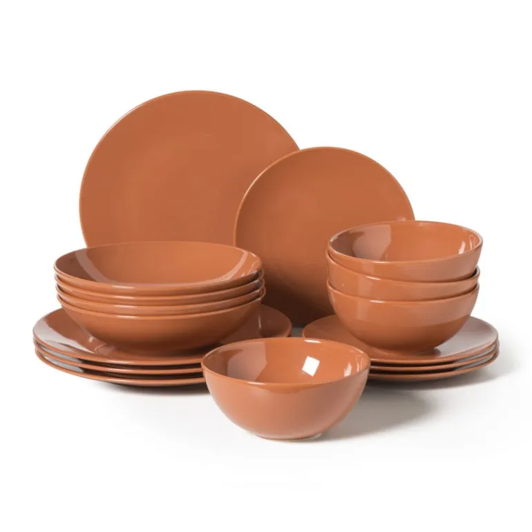 Dek de tafel in stijl met deze terra kleurige serviesset. De set bestaat uit 16 delen en is geschikt voor 4 personen. Je krijgt alles wat je nodig hebt: ontbijtborden, dinerborden, diepe borden en schaaltjes. Het servies heeft een terra kleur die rust en warmte brengt aan tafel. Perfect voor dagelijks gebruik én voor een sfeervol etentje.