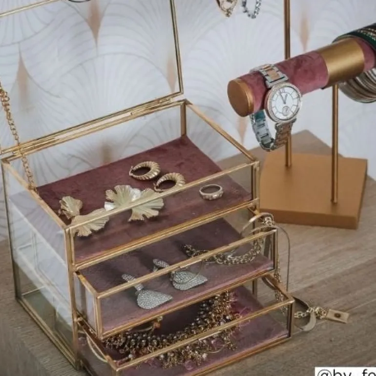 Deze sieradendoos met 3 lades is perfect voor het opbergen van jouw favoriete sieraden. Dankzij het glas zie je goed welke sieraden in het kistje liggen en de zachte velvet zorgt ervoor dat alles onbeschadigd blijft. Handig en mooi!