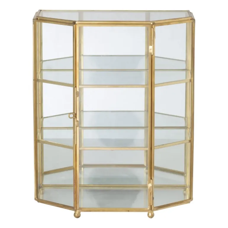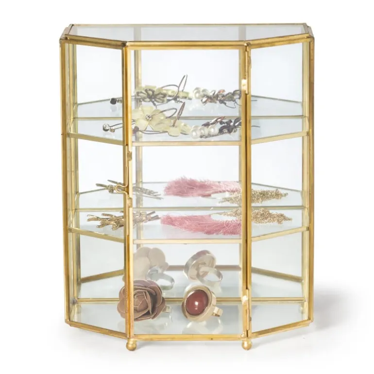Dit sieradenkastje is perfect voor het opbergen van jouw favoriete sieraden. Dankzij het glas zie je goed welke sieraden er in het kastje liggen. Handig en mooi! Het kastje is gemaakt van glas, goudkleurig en heeft een afmeting van 18.5x12x23 cm.