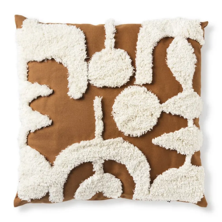 Op zoek naar een trendy en comfortabel accent voor jouw interieur? Ga voor dit bruine sierkussen met abstracte vormen van een zachte structuur. Mooi voor de bank of in een stoel!