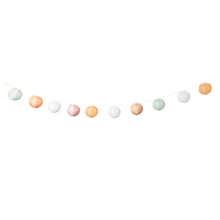 Tussen elke lampion zit 30 cm en de slinger heeft een totale lengte van 440 cm, waarvan 200 cm voedingskabel. Elke lampion heeft een diameter van 15 cm.