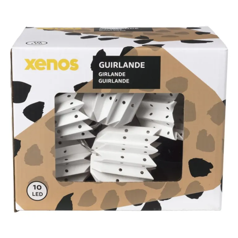 Deze slinger zorgt voor een warme en gezellige sfeer in huis. De slinger is gemaakt van papier en bestaat uit 10 warm witte led lampjes. De slinger werkt op 2x AA batterijen. Let op! Deze worden niet meegeleverd.