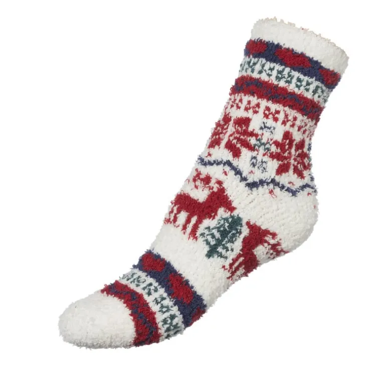 Dit paar fluffy sokken met kerst design zijn perfect voor die koude winterdagen of als cadeautje voor onder de kerstboom. De sokken zijn gemaakt van polyester en zijn one size.