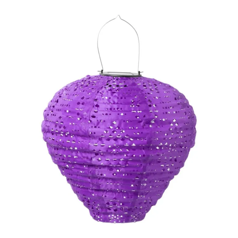 Deze barok lampion creëert een gezellige sfeer in je tuin of je balkon! De lampion werkt op zonlicht, wat betekent dat je geen gedoe hebt met kabels of batterijen. Door het patroon wordt je tuin mooi verlicht. Deze lampion is gemaakt van polyester, is paars van kleur en heeft een diameter van 28 cm en een hoogte van 30 cm. De barok lampion is enkel voor gebruik buitenshuis.