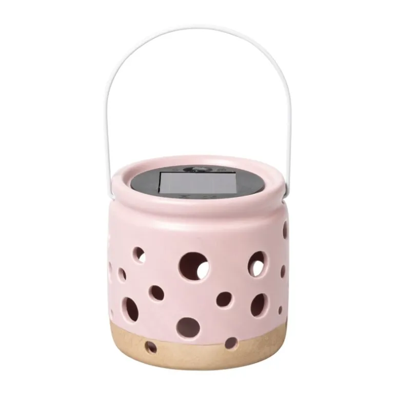 Breng een vleugje kleur en charme in je tuin met dit prachtige roze solar lampje van keramiek. Met een diameter van 9,3 cm en een hoogte van 9,2 cm, is dit lampje de perfecte maat om een speelse en gezellige sfeer te creëren in je buitenruimte. Het keramiek in een zachte, romantische roze tint voegt een subtiel accent toe aan je terras of tuin. Dankzij de zonne-energie technologie laadt het lampje zich overdag op en zorgt het ’s avonds voor een warme, sfeervolle gloed zonder dat je afhankelijk bent van elektriciteit.