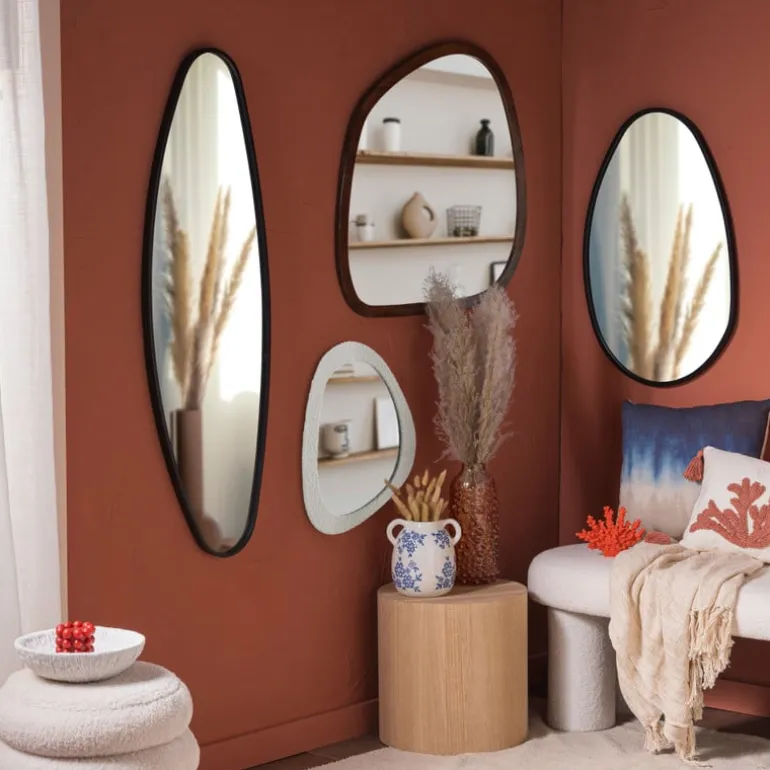 Voeg een vleugje moderne elegantie toe aan je interieur met deze spiegel! De stijlvolle spiegel heeft een unieke, organische vorm die elke ruimte direct een eigentijdse uitstraling geeft. De strakke zwarte rand geeft een luxe en minimalistische touch, terwijl de organische vorm zorgt voor een speels effect.