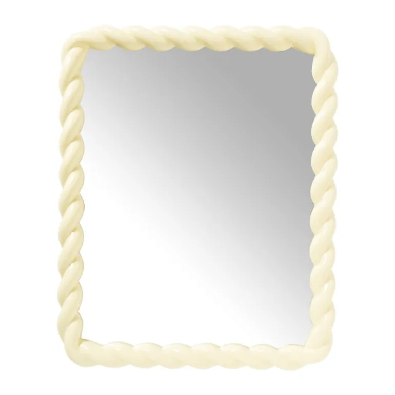 Breng een speelse touch toe aan je interieur met deze spiegel! De rechthoekige spiegel is voorzien van een opvallende lijst met een gedraaide twist-structuur. De spiegel heeft een hoogte van 53 cm, een breedte van 43 cm en een diepte van 2.5 cm en heeft een gele omlijsting. Hang hem in je hal voor een warm welkom, in de slaapkamer voor je ochtendroutine, of geef je woonkamer een speelse update. Kies jouw favoriete kleur en maak van deze spiegel een echte eyecatcher in jouw interieur!