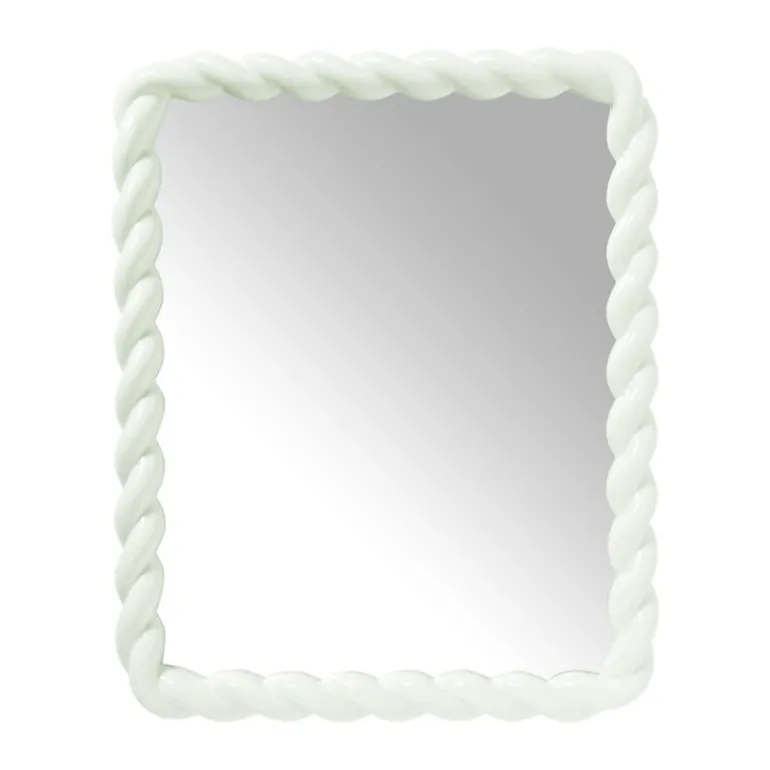 Breng een speelse touch toe aan je interieur met deze spiegel! De rechthoekige spiegel is voorzien van een opvallende lijst met een gedraaide twist-structuur. De spiegel heeft een hoogte van 53 cm, een breedte van 43 cm en een diepte van 2.5 cm en heeft een groene omlijsting. Hang hem in je hal voor een warm welkom, in de slaapkamer voor je ochtendroutine, of geef je woonkamer een speelse update. Kies jouw favoriete kleur en maak van deze spiegel een echte eyecatcher in jouw interieur!