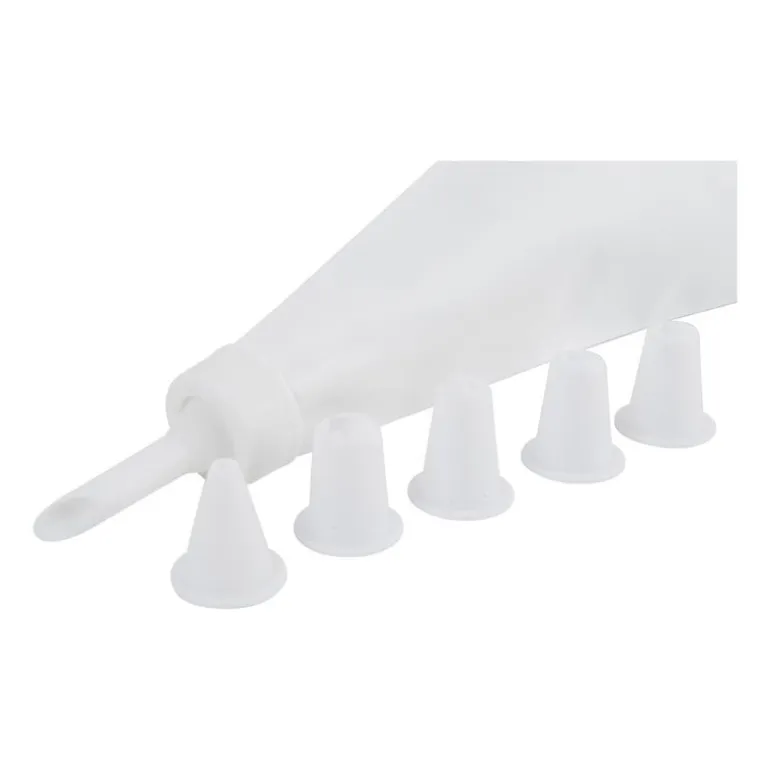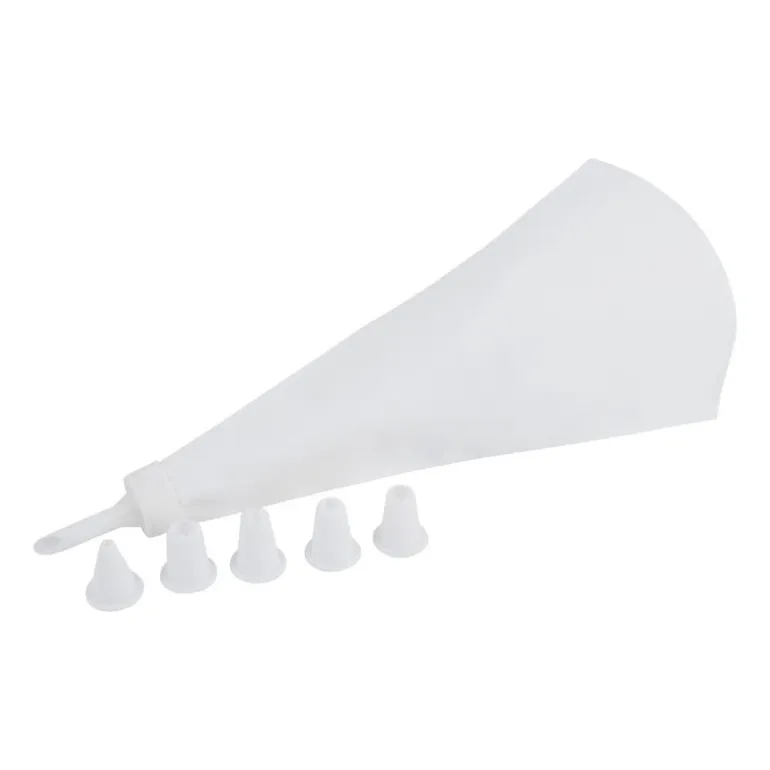 Een fijne spuitzak is ideaal voor het versieren en garneren van onder andere gebak, nagerechten en koude schotels. Deze spuitzak is gemaakt van polypropyleen en soepel in gebruik, zodat je jouw baksels nauwkeurig kunt decoreren. In de verpakking zitten veschilldende soorten spuitmondjes. Hierdoor kun je variëren in je creaties, van een dikke toef slagroom op je taart tot een subtiel lijntje op je cupcake. De spuitmondjes kun je gemakkelijk op de spuitzak draaien, waardoor deze stevig vast zitten. Na gebruik kun je de zak gemakkelijk afwassen en ophangen aan het haakje, zodat je ‘m de volgende keer weer kunt gebruiken.