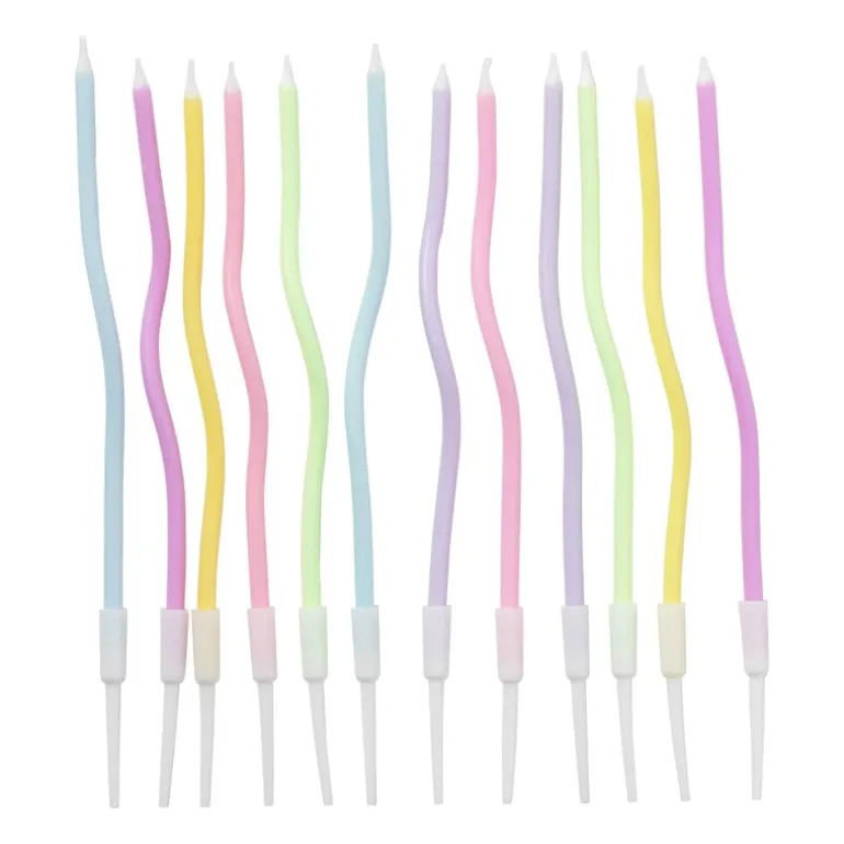 Deze kleurrijke gedraaide taartkaarsjes zorgen echt voor een spectaculaire verjaardagstaart. Lukt het jou om al deze taartkaarsjes in één keer uit te blazen? Het is zeker een poging waard! Deze gekleurde kaarsjes komen in een set van 12, hebben een diameter van 3 cm en zijn 15 cm hoog.