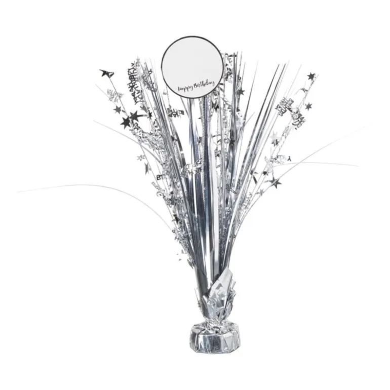 Met deze zilveren tafeldecoratie geef je elk feestje een sprankelende touch! De decoratie bestaat uit glinsterende folie en sterren, met een vrolijke cirkel met ‘happy birthday’ erin op de top (perfect om een foto van de jarige op te plakken!). Ideaal voor op een feesttafel, naast de taart of als centerpiece. Dankzij de bijgevoegde stickervellen met cijfers maak je hem extra persoonlijk door de leeftijd van de jarige toe te voegen. Perfect voor een feestje vol glitter en glamour!