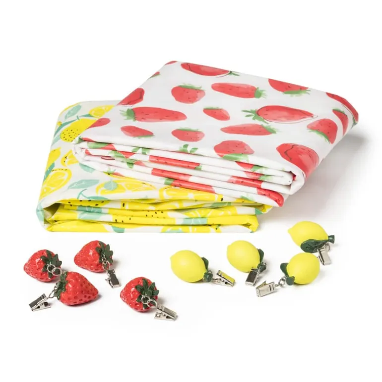 Bescherm je tuintafel met dit zomerse tafelkleed. Met een print van aardbeien, helemaal gezellig! Ook is het makkelijk schoon te maken met een doekje. De afmeting van het tafelkleed is 150×220 cm.