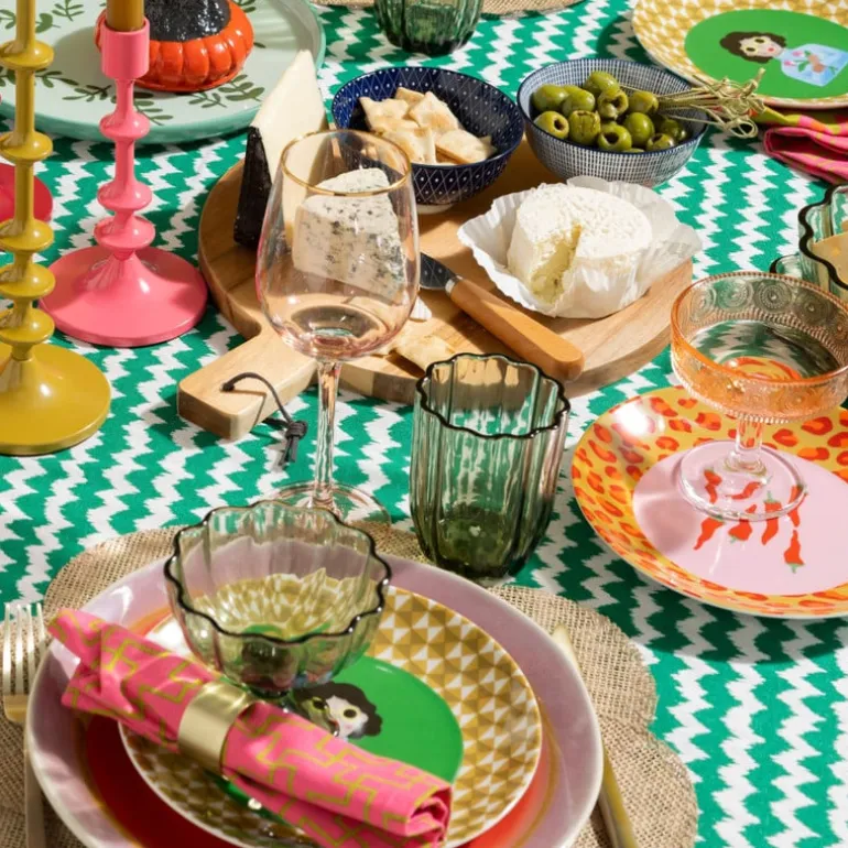 Met dit groene tafelkleed geef je je eettafel in één klap een frisse, speelse look. De grafische zigzagprint in wit en groen zorgt voor een levendig effect, zonder te overheersen. Perfect voor brunches, borrels of gewoon een doordeweekse maaltijd met stijl. Mix met kleurrijk servies of hou het rustig met natuurlijke tinten. Dit tafelkleed kan alle kanten op.