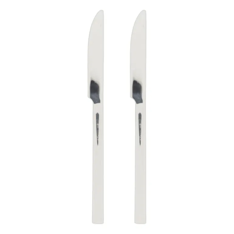 Deze prachtige zilverkleurige tafelmessen hebben zachte lijnen en vloeiende rondingen. Zilver is één van de trendkleuren van dit moment. De kleur is goed te combineren met koper, wit, zwart, goud en hout. De tafelmessen zijn gemaakt van RVS, komen in een set van 2 en hebben een afmeting van 21 cm. De vorken zijn vaatwasmachine bestendig.