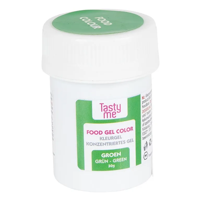 Met deze kleurgel van Tasty Me kun jij jouw heerlijke meesterwerkjes de mooiste kleuren geven. Deze eetbare kleur zorgt ervoor dat het baksel een mooie kleur krijgt en er echt uit komt te zien als in jouw dromen. De gel mag je niet direct eten en doe maximaal 5 gram in een baksel. In een potje zit 30 gram.
