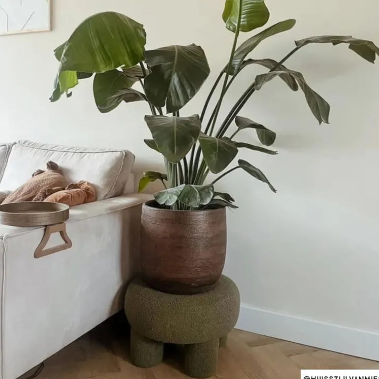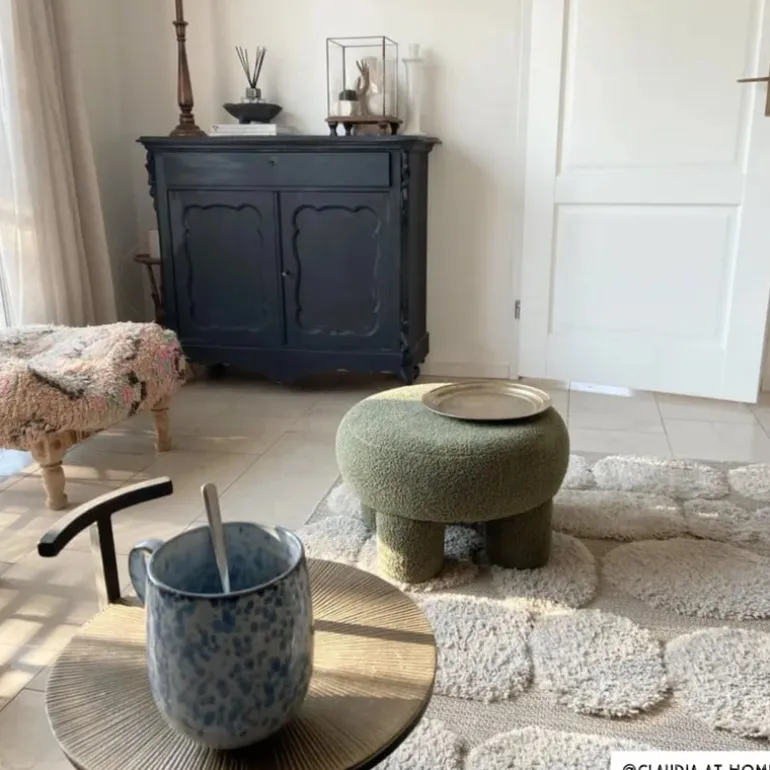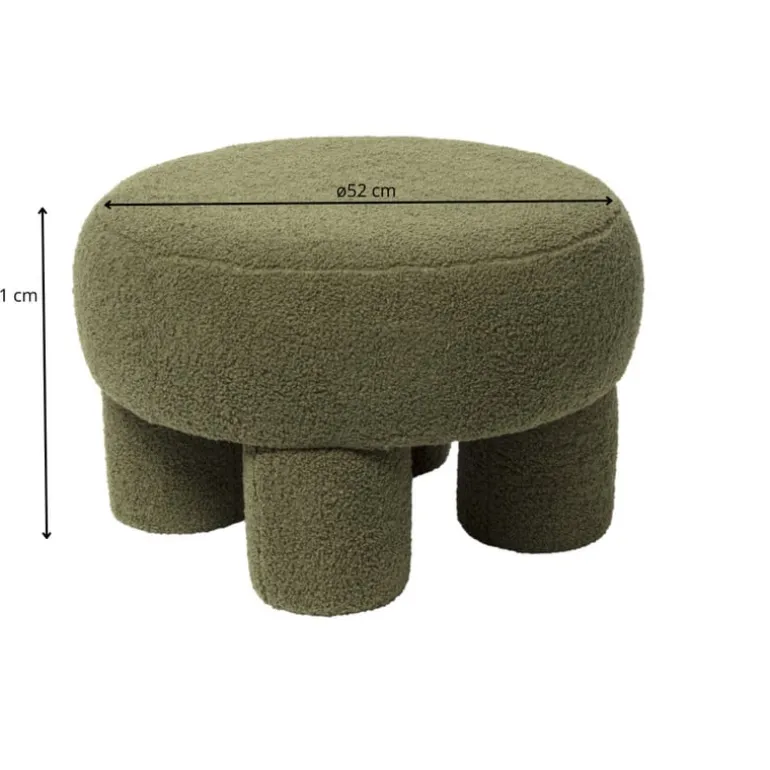 De poef heeft een diameter van 52 cm en een hoogte van 31 cm.