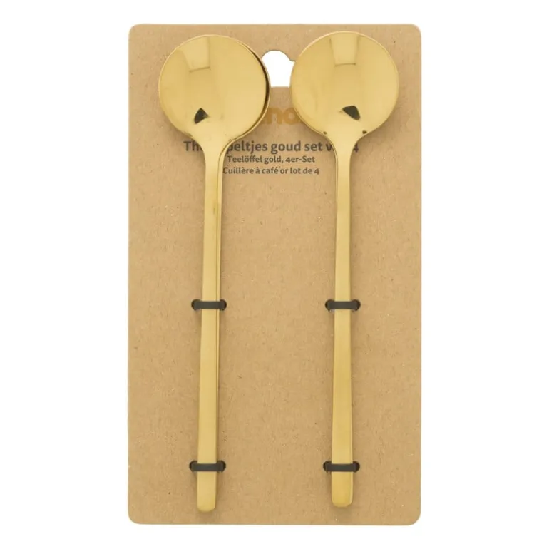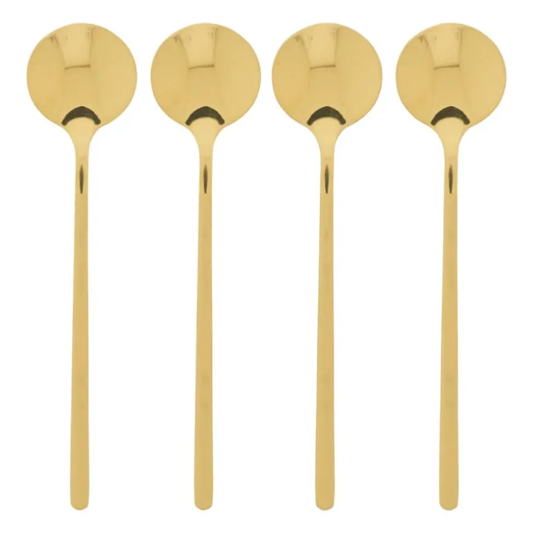 Deze prachtige goudkleurige theelepels hebben zachte lijnen en vloeiende rondingen. Goud is één van de trendkleuren van dit moment. De kleur is goed te combineren met koper, wit, zwart, zilver en hout. De theelepels komen in een set van 4 en hebben een afmeting van 13 cm.