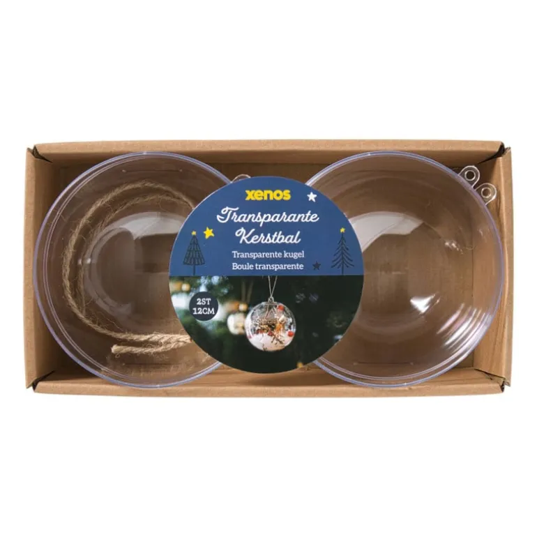 Ga zelf aan de slag met deze grote transparante kerstballen van 12 cm. In deze set zitten er twee, klaar om gevuld te worden met wat jij maar wilt! Denk aan glitters, mini-figuurtjes, sneeuw of een lief briefje. Ideaal voor een persoonlijke touch in je kerstboom of als zelfgemaakt cadeautje. Ook leuk om samen met kinderen te versieren.
