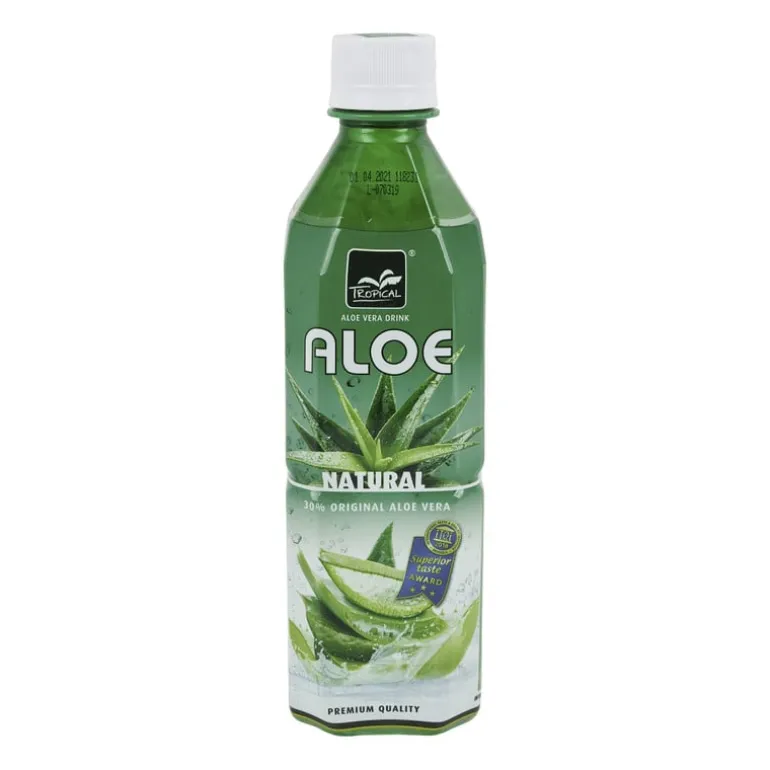 Dit flesje is gevuld met verfrissende aloë vera drink. Een tropische dorstlesser gemaakt van de aloë vera plant. In het flesje zit 500 ml.