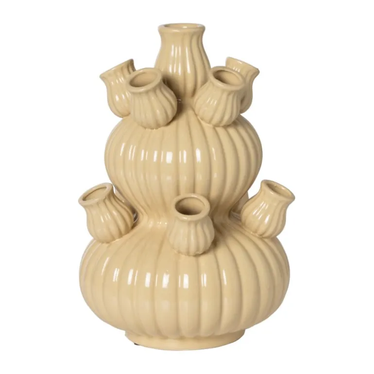 Deze tulpenvaas wil je hebben! De vaas is een echte eyecatcher, met of zonder bloemen erin. Voorzie de halsjes met verschillende soorte bloemen voor een kleurrijk effect. De prachtige beige vaas is gemaakt van keramiek en heeft een doorsnede van 21.5 cm en een hoogte van 29.5 cm.
