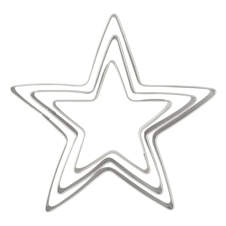 Een taart smaakt nog lekkerder met mooie decoratie. Deze uitsteekvormpjes kunnen jou daar zeker bij helpen. Handig om bijvoorbeeld rolfondant of marsepein in een mooie vorm uit te drukken. In de verpakking zitten 3 verschillende sterren vormen. De uitsteekvormpjes zijn gemaakt van RVS en hebben verschillende afmetingen. Vorm 1 is 8 cm, vorm 2 is 11 cm en vorm 3 is 13.5 cm