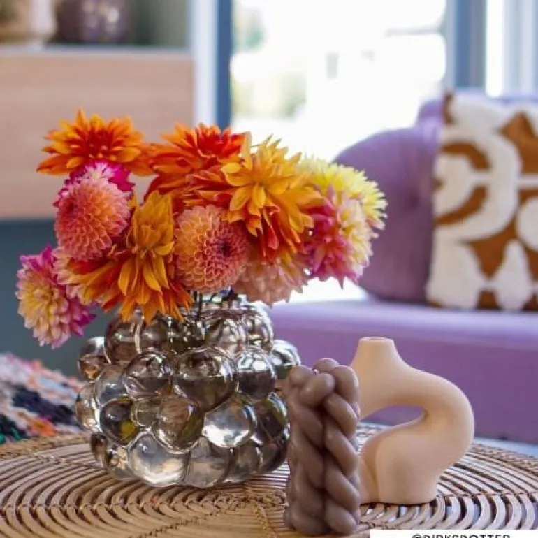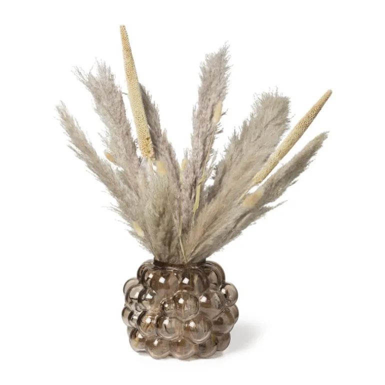Deze grijze bubbel vaas verdient een mooi plekje in jouw interieur. Het grijze glas is geblazen in een bubbel patroon en dat zorgt voor een uniek design. Vul de vaas met trendy pluimen of kleurrijke (kunst)bloemen. De diameter is 22 cm en de hoogte is 18 cm.