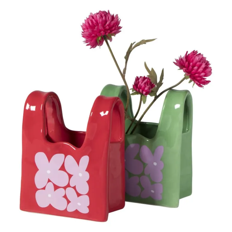 Met een afmeting van 17.5 cm hoog, 14 cm breed en 8.5 cm diep is deze handtas vaas compact genoeg om overal te plaatsen, maar groot genoeg om een mooi boeket te presenteren. De combinatie van een dieprode kleur met roze bloemen zorgt voor een speelse en vrolijke uitstraling die zeker de aandacht trekt. De handtas vaas is gemaakt van dolomiet.