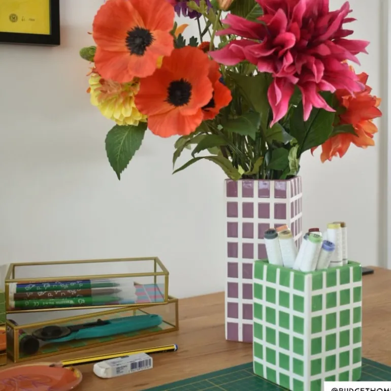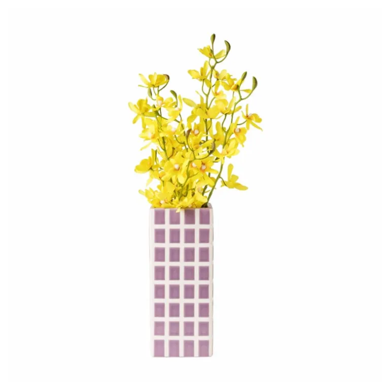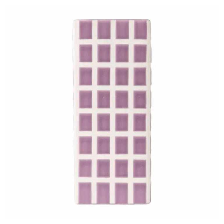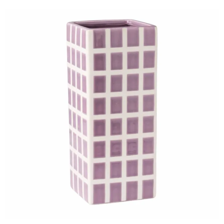 Geef je interieur een frisse uitstraling met dit getegelde vierkante vaasje. Dit stijlvolle vaasje heeft een mooie paarse kleur, die rust en harmonie brengt in elke ruimte. De strakke, vierkante vorm en het speelse geblokte patroon maken de vaas uniek. Met een hoogte van 20 cm en een breedte en diepte van 8 cm is dit vaasje perfect voor zowel kleine bloemetjes als een decoratief takje. Zet het vaasje op een bijzettafeltje, vensterbank of op een plank en voeg een vleugje stijl toe aan je woonkamer, slaapkamer of keuken. Het vaasje is ook verkrijgbaar in het groen en in een kleinere variant.