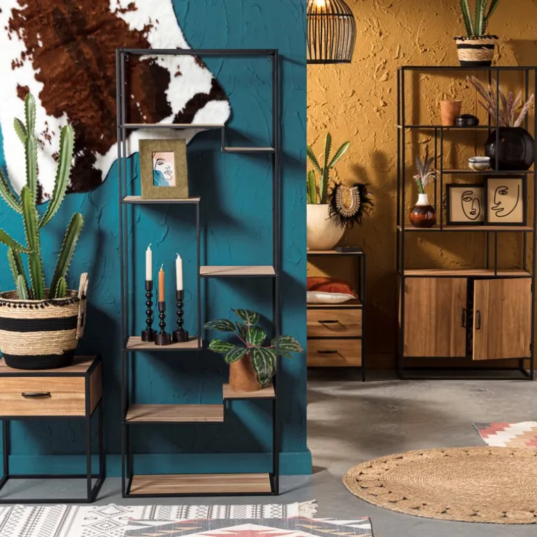 De kast is gemaakt van MDF en metaal, wat de kast een industriƫle uitstraling geeft.