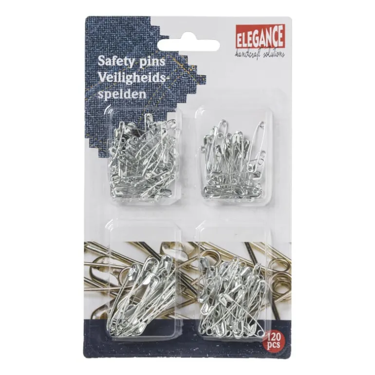 Handige veiligheidsspelden om dingen mee vast te zetten. De spelden zijn van metaal in de kleur zilver. In deze set zitten 120 spelden.