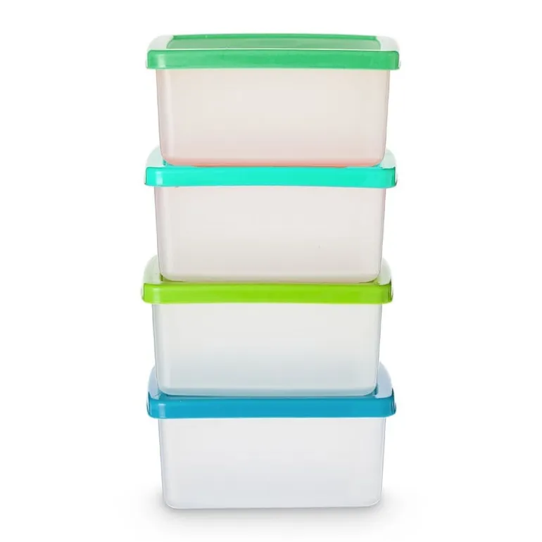 Dit setje van 4 vershoudbakjes is ideaal in het gebruik op school, thuis of op het werk. De bakjes hebben een inhoud van 0,1 liter. Door het stevige plastic zijn ze geschikt voor het gebruik in de magnetron, vaatwasser en vriezer.