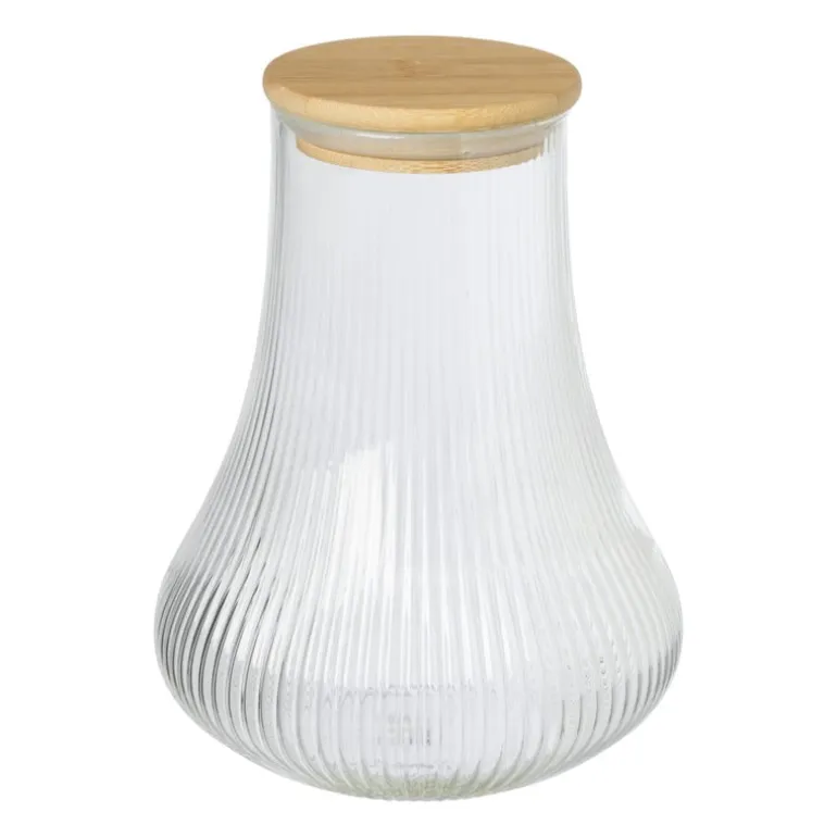 Deze voorraadpot met bamboe deksel is een musthave voor iedere keuken. De pot heeft een diameter van 15 cm en een hoogte van 20 cm. Handig voor het opbergen van gedroogde kruiden en specerijen, noten en zaden. Jouw keuken was nog nooit zo netjes geordend!