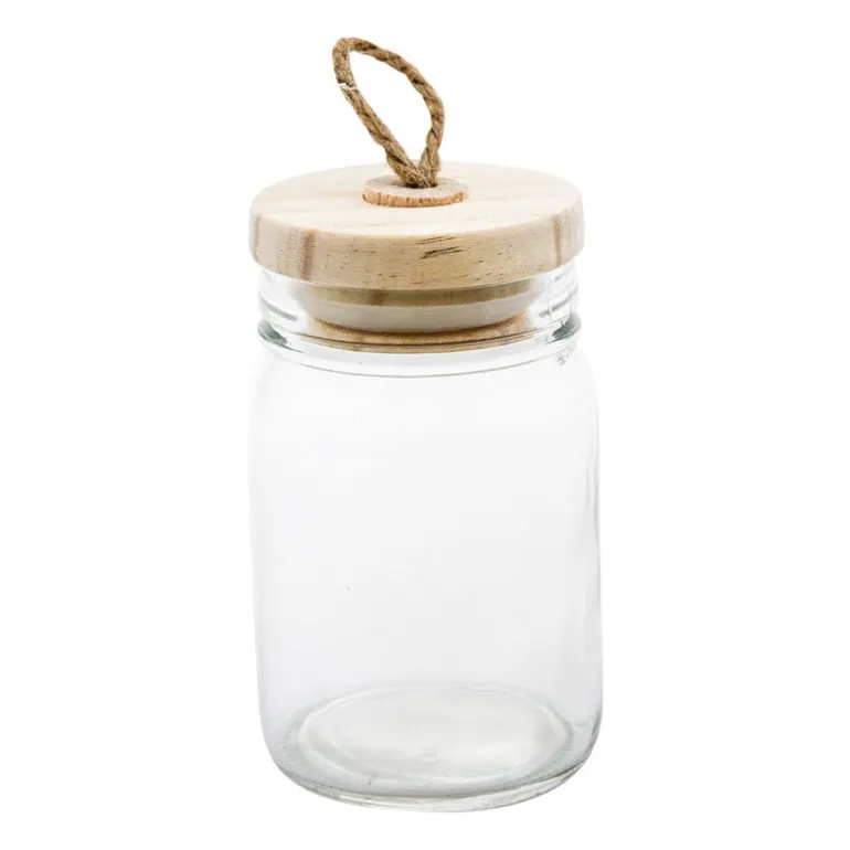 Dit leuke potje is ideaal om kleine dingetjes in op te bergen. Van kruiden tot paperclips, het kan allemaal. Dit glazen potje is afsluitbaar met een houtendeksel. Dankzij de handige sluitring laat het deksel niet zo maar los en kun je het potjes zelfs ophangen aan de lus.