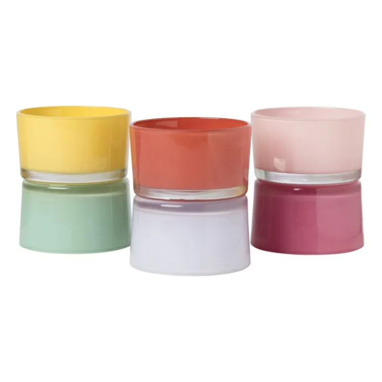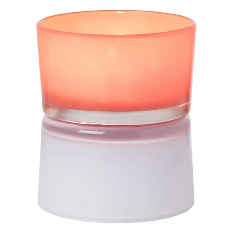 De waxinelichthouder is rood en lila van kleur en is verkrijgbaar in meerdere kleuren. Het leuke aan deze waxinelichthouder is dat hij aan beide kanten te gebruiken is. Je kan er dus voor kiezen om je waxinelichtje in het rode gedeelte of in het lila gedeelte te laten branden.