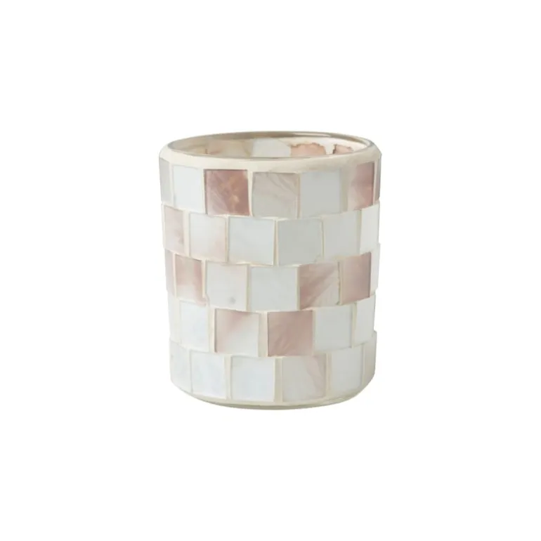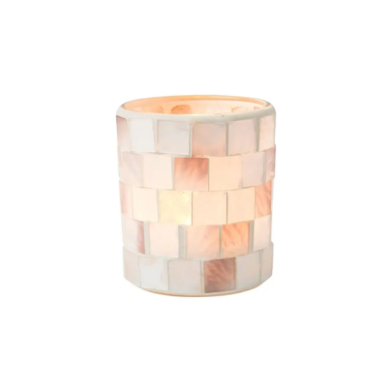 Deze waxinelichthouder met mozaïek is een sfeervolle toevoeging aan jouw interieur. Plaats een waxinelichtje in de houder en zie hoe het licht door diverse kleuren van het mozaïek danst. Een prachtig lichteffect! De waxinelichthouder heeft een witte kleur, is gemaakt van glas en heeft een doorsnede van 7.3 cm en een hoogte van 8.5 cm.