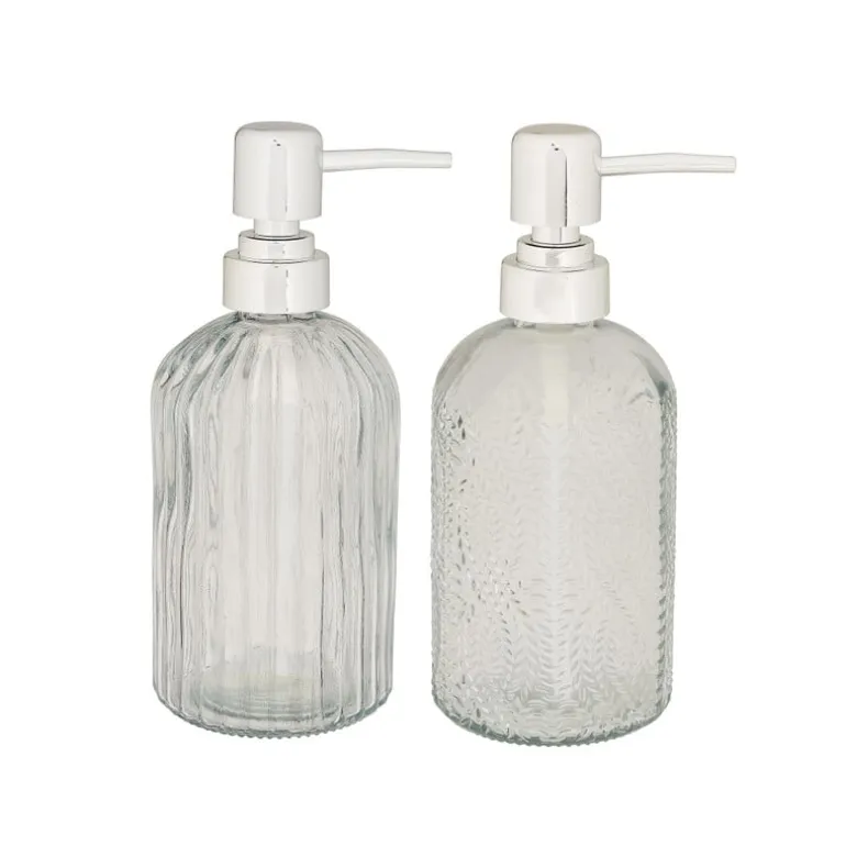 De combinatie van het glas en de zilveren dop van deze zeeppompjes geeft elk toilet of badkamer een elegante uitstraling. Met het heldere glas kun je de pompjes mooi comineren met zachte kleuren zeep. De dopjes zijn er gemakkelijk af te draaien waardoor de zeeppompjes makkelijk bij te vullen zijn. Ze hebben een diamter van 7.7 cm en een hoogte van 18.5 cm.