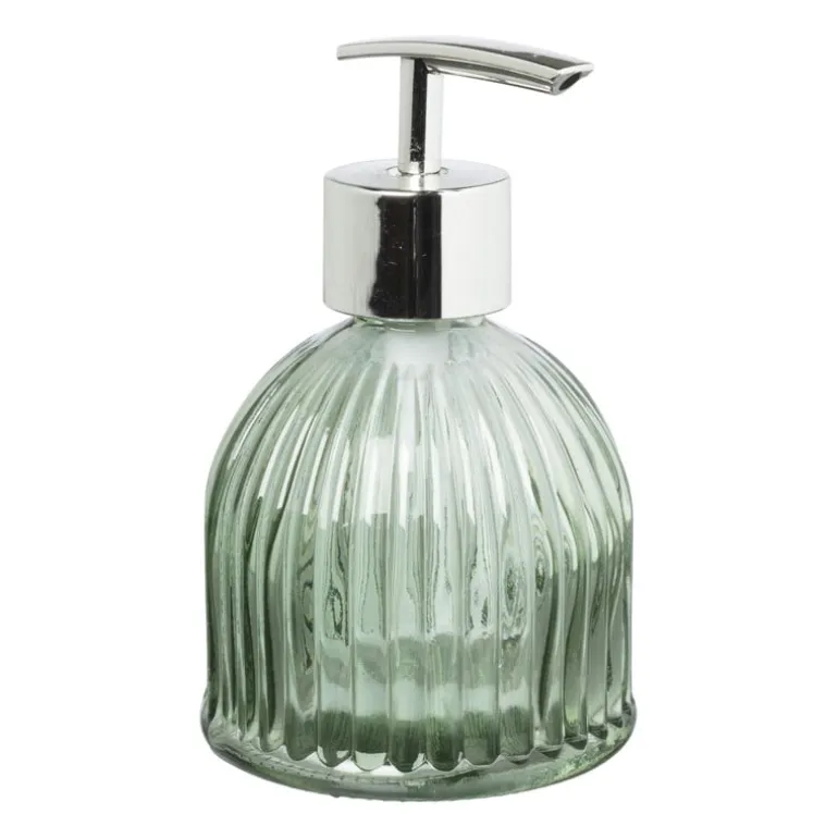 Handen wassen doe je elke dag dus zet een mooie zeeppomp neer in de badkamer, toilet en keuken. Deze zeeppomp met groen geribbeld glas staat gezellig in je interieur. Een ander voordeel is dat het navulbaar is. Vul ‘m dus regelmatig aan met je favoriete zeep. De zeeppomp heeft een diameter van 8 cm en een hoogte van 11.5 cm.