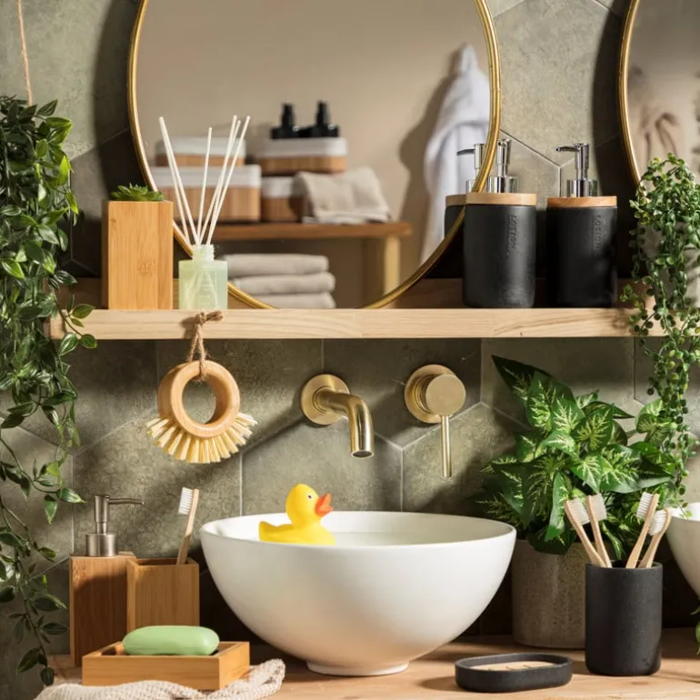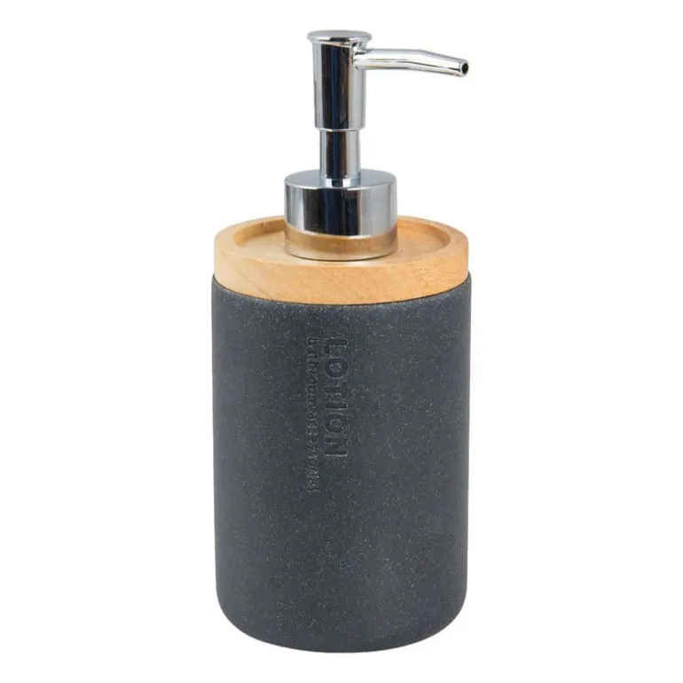 Met dit zeeppompje geef je het toilet of de badkamer een mooie en natuurlijke uitstraling. Het zeeppompje is gemaakt van zwart kunststof met een houten touch en heeft een zilveren pomp. De dop is gemakkelijk van de zeeppomp af te draaien, zodat je deze bij kunt vullen wanneer je wilt. De zeepdispenser heeft een afmeting van 18×7.5 cm. Leuk in combinatie met de andere badkameraccessoires nature. Zo creĆ«er je een mooi geheel.