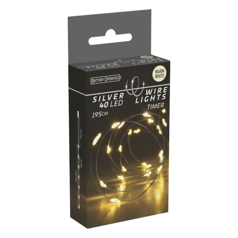 Subtiel en sfeervol! Deze zilverdraadverlichting van 1,95 meter met 40 LED-lampjes is ideaal voor decoratie in huis. Deze verlichting is enkel voor binnen.
